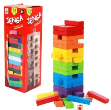54-Piece Colorful Wooden Jenga Game Jumbo Size | Classic Stacking & Balance Game for Kids & Family