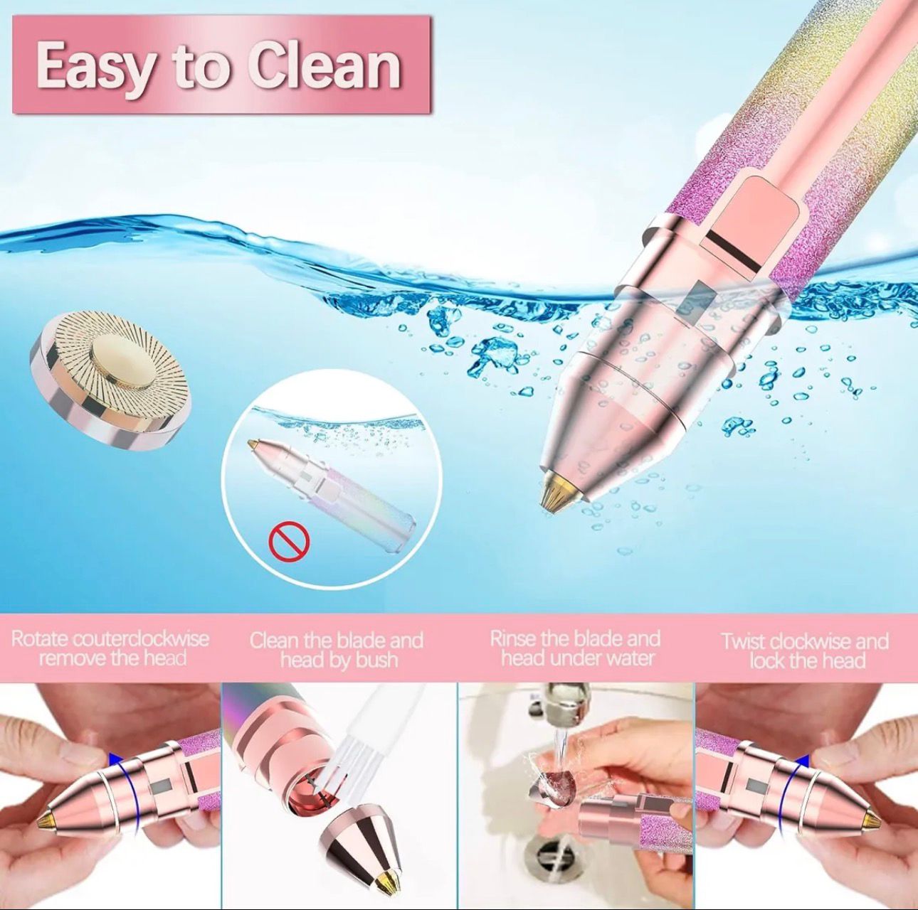 ✔ Hypoallergenic & Easy to Clean – Features gentle, skin-friendly blades that work safely on all skin types, with a removable head for easy cleaning.